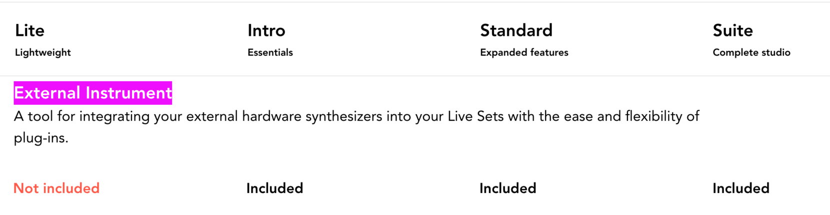 It looks like it has been added to Intro, so only Lite does not include External Instruments.
